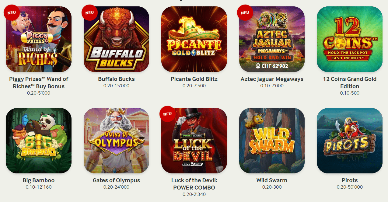 Auf der Plattform werden moderne und klassische Slots, die die Vorlieben verschiedener Spielertypen abdecken, angeboten. Auf diese Weise ist für jeden Geschmack und jede Vorliebe etwas Passendes dabei. Die Sammlung wird kontinuierlich mit den neuesten und heissesten Titeln aktualisiert